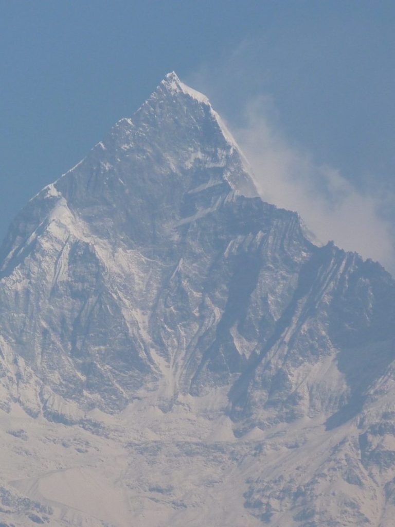 Het Annapurna-gebergte is rond 8000 meter hoog.