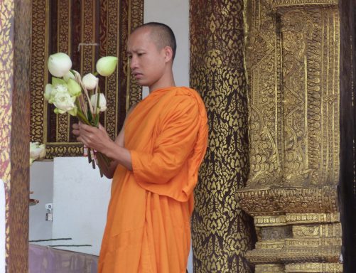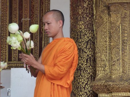 In onderstaande foto's vind je een monnik met lotusbloemen. Wetenschappers hebben de natuurlijke eigenschappen van het lotusblad gekopieerd in de vorm van nanotechnologie. Het blad heeft microscopisch kleine bultjes die ervoor zorgen dat waterdruppels niet hechten, maar in bolletjes wegrollen. Hierbij nemen ze al het vuil en stof mee. De plant laat wat haar minder mooi maakt van zich afglijden en blijft stralen. Probeer dat ook.